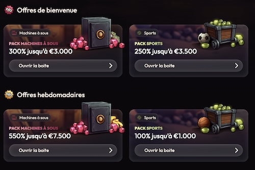 Son bonus de bienvenue est énorme et il offre une véritable opportunité à un nouvel inscrit de partir sur de bonnes bases, avec une cagnotte largement majorée. De plus, les bonus de dépôts proposés sont parmi les plus gros du secteur. Il n’y a que des jeux de qualité dans toutes les sections et l’interface du mode Paris Sportifs est très ergonomique.